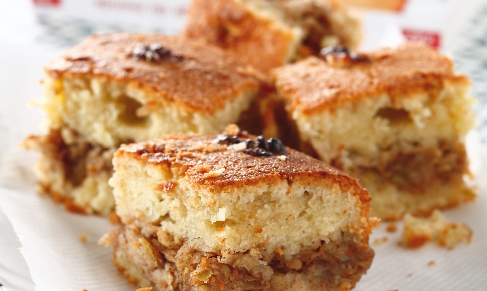 Avouons-le, ce gâteau n’a rien d’extravagant. Une pâte entre génoise et quatre quarts qui prend en sandwich une râpée de pommes fortement assaisonnées à la cannelle. Dit comme ça, pas de quoi réécrire le grand Larousse de la cuisine. Et pourtant, rien n’est plus délectable au petit déjeuner ou au goûter que de croquer dans ces différentes couches, la première nature et légère, la deuxième juteuse et acidulée et la troisième, imbibée du jus des pommes, mœlleuse et subtilement fruitée. Encore une fois, merci Sonia. Contrairement aux lois pâtissières en vigueur, j’apprécie ce gâteau très frais et c’est pourquoi je le garde au réfrigérateur et ne le sors que 20 min avant de le déguster. Mais je ne saurais que trop vous conseiller de n’en faire qu’à votre palais !