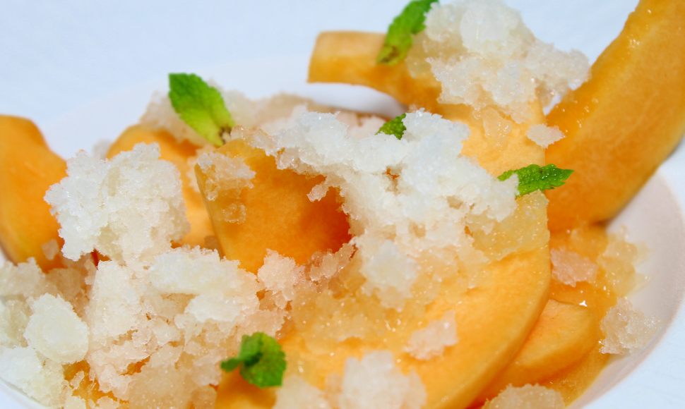 Verser le sauternes dans un plat, ajouter l’eau minérale. Mélanger et mettre le plat au congélateur pour 3 heures.