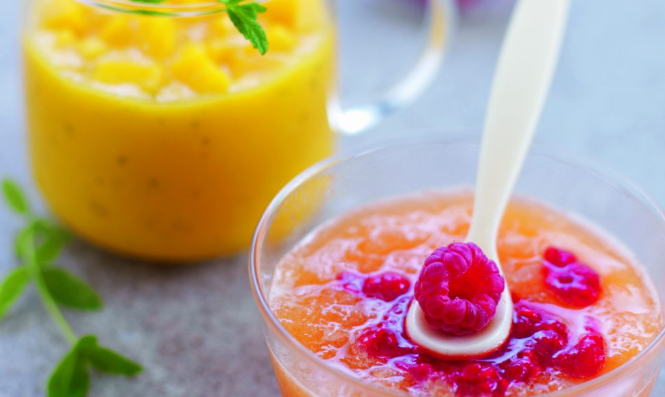 Paule Neyrat : "Ces deux recettes conviennent en fait pour toute la famille. Adaptez la quantité en fonction de l’appétit de Bébé. Melon, mangue, framboise, c’est plein d’antioxydants, tout ça. Un tout petit en a autant besoin qu’un adulte !"