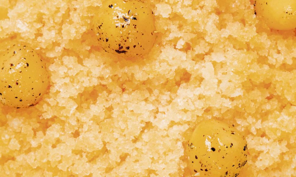 Coupez et épépinez les melons de Cavaillon puis réalisez des billes de chair à l’aide d’une cuillère à pomme parisienne. Roulez délicatement ces dernières dans l’huile d’olive puis dans le poivre.