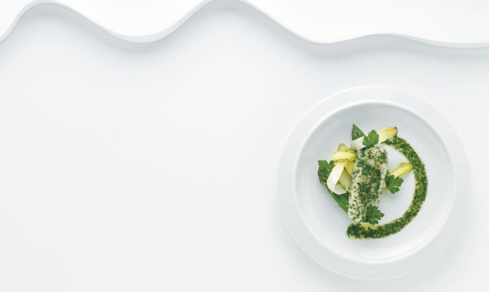 Le merlu est un poisson à la chair ferme et lisse : il est également appelé colinot ou bardot dans certaines régions. Accommodé à une salsa verde à base de fenouil, asperges, persil et asperges blanches en copeaux, il donne à goûter tout son potentiel.