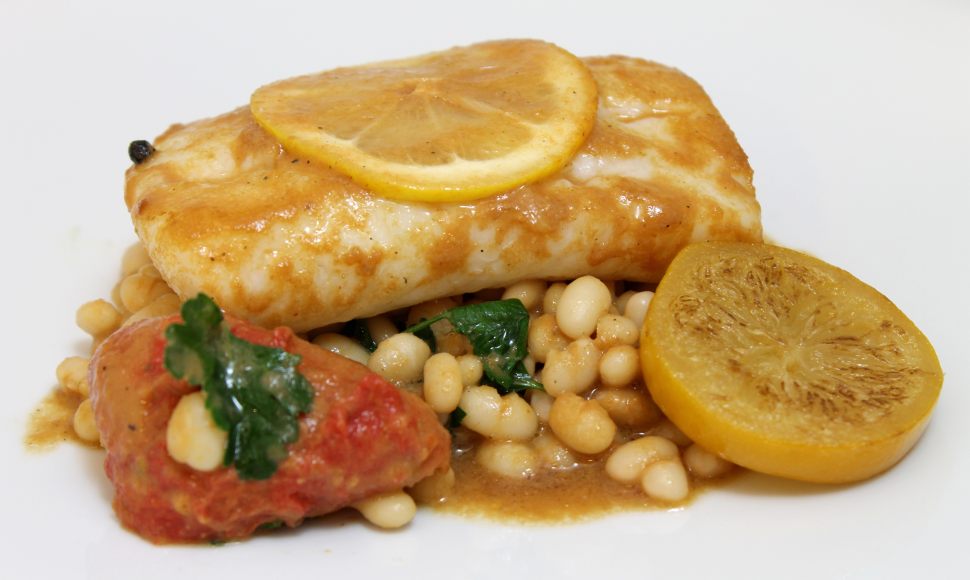 Nous nous sommes inspirés d’une recette populaire napolitaine, « Musillo in salsa agra » à base de morue (« musillo » désignant en napolitain la partie la plus charnue de la morue). Nous l’avons élaborée avec du merlu et une garniture de cocos, de tomate et de citron confits.
