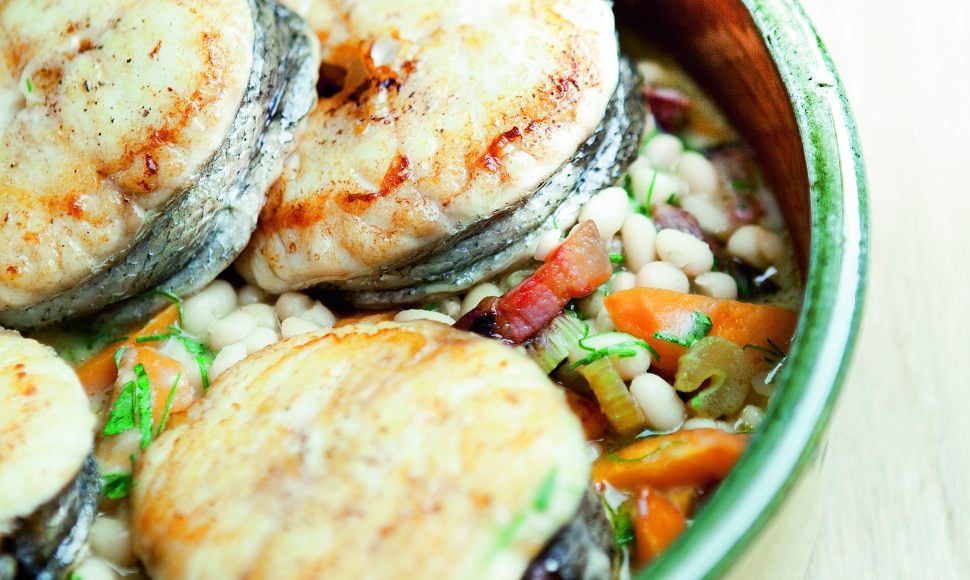On sort des habitudes et on cuisine des haricots cocos avec du poisson et un peu de lard fumé pour le relever. Il y a du merlu dans cette recette, mais vous pouvez très bien le remplacer par du thon par exemple. Légumes, cocos, merlu, voilà un plat bien équilibré et léger de surcroît.
