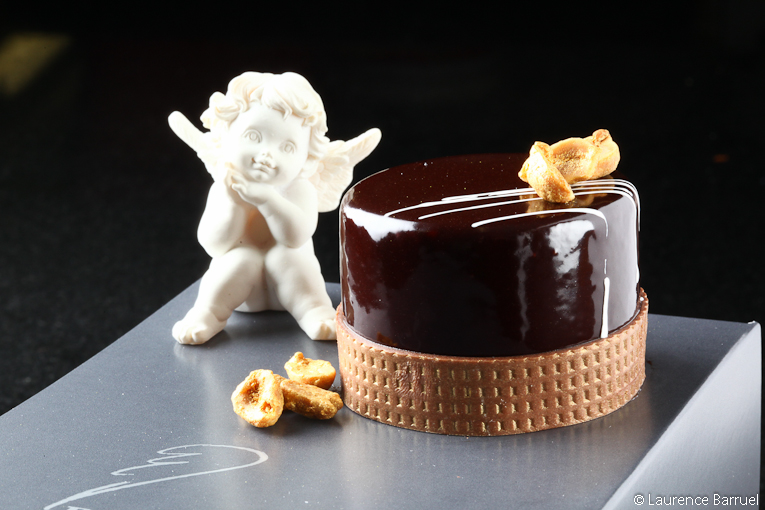 Verser cette préparation sur le chocolat au lait puis mixer. Ajouter les cacahuètes légèrement concassées. Ajouter la fleur de sel puis réserver.