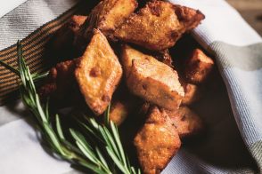 « Quand on était gosse, ma Mamie Adeline nous servait pour le goûter, ce dessert traditionnel des Landes à base de semoule de maïs dans un bol. Elle y ajoutait du lait, du sucre, de la vanille, de l’armagnac et de la fleur d’oranger. On le mangeait tiède, mais s’il en restait, ma grand-mère le gardait au frigo, puis le soir même, lorsqu’il avait durci, elle le faisait poêler dans de l’huile : ça devenait croustillant en surface, tout en restant moelleux à l’intérieur. »