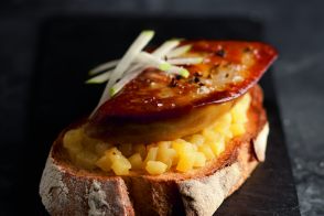 Dénervez les foies et mettez-les au sel avec tous les assaisonnements. Moulez dans la terrine finale et filmez au contact Réservez à 3°C pendant une nuit.