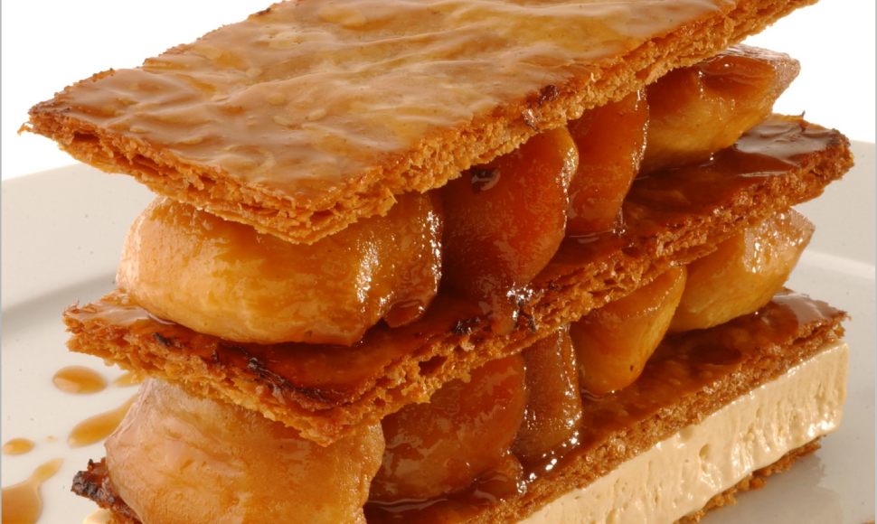 Cuire au four à 180 °C. Au bout de 15 minutes, retirer la grille et saupoudrer la pâte de sucre glace. Élever la température à 250 °C et surveiller la cuisson jusqu’à ce que la pâte soit colorée et caramélisée.