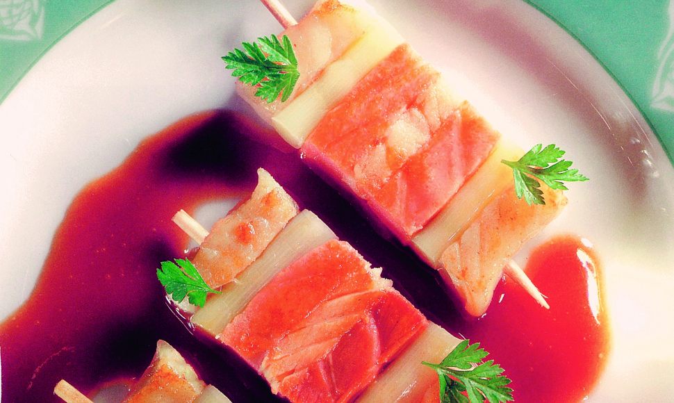 Coupez le filet de sole en 16 bâtonnets de 3,5 cm de long et de 5 mm d'épaisseur. Faites également 16 bâtonnets dans le saumon fumé. Retirez la peau de l'anguille fumée et coupez-la aussi en 16 bâtonnets de même taille que les bâtonnets de sole.