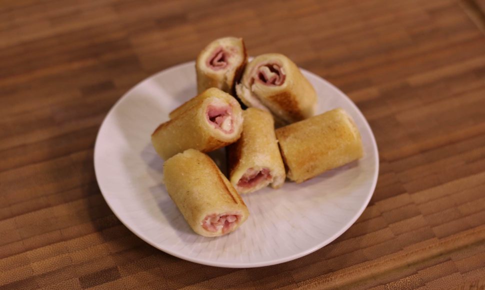 Couper les tranches de jambon en deux. Déposer une tranche de fromage puis une tranche de jambon. Rouler le croque en le serrant bien. L'enrouler dans du film alimentaire et laisser reposer 1 h au réfrigérateur.