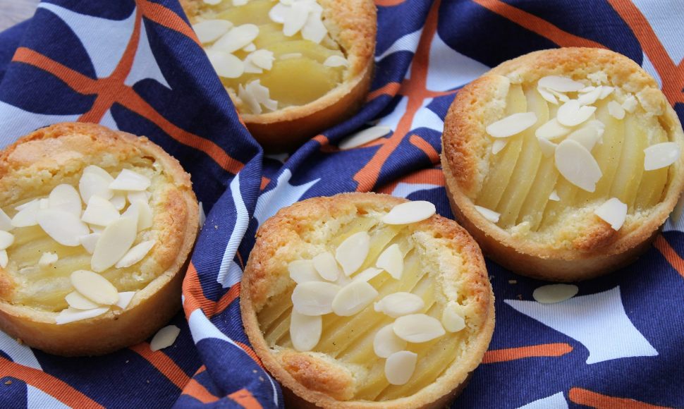 Mélanger le beurre pommade, le sucre glace, la poudre d’amande et l’œuf. Puis incorporer la farine tamisée. Rouler la pâte en boule, l’envelopper de film étirable. Foncer 4 moules de 8 cm de diamètre beurrés.