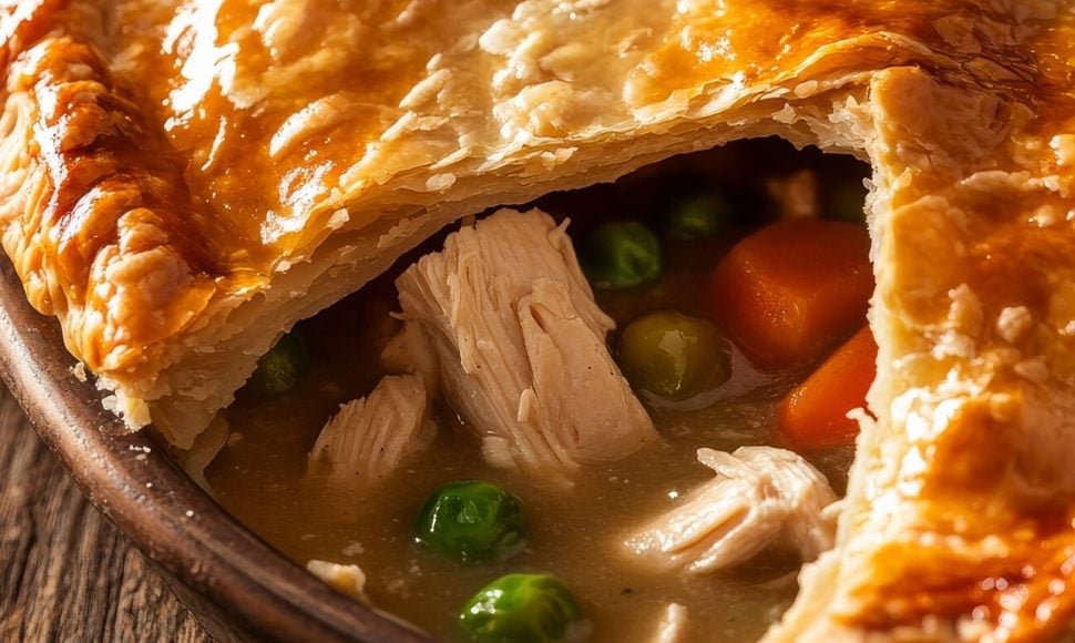 Épluchez les carottes et coupez-les en petits dés. Épluchez les petits oignons. Dans une petite casserole, portez le bouillon de poule à ébullition, ajoutez-y un peu de lait, puis réservez. Dans une grande cocotte, faites fondre le reste de beurre. Faites-y sauter les petits oignons de 10 à 15 min à feu moyen, jusqu’à ce qu’ils soient translucides. Ajoutez la farine et faites cuire 2 min à feu doux, sans cesser de remuer. Ajoutez le bouillon de poule chaud. Laissez mijoter pendant environ 1 min à feu doux en remuant, jusqu’à ce que la sauce prenne de l’épaisseur et perde son goût de farine. Ajoutez la crème liquide, 1 c. à c. de sel, 1/2 c. à c. de poivre, les morceaux de poulet, les dés de carottes, les petits pois et le persil. Mélangez bien.