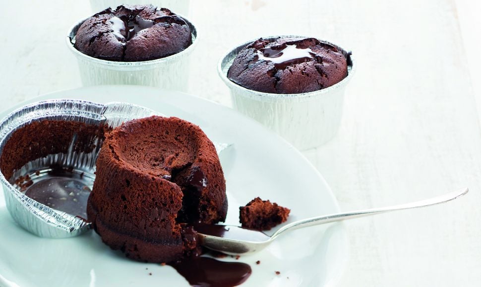 Préchauffez le four à 220 °C (th. 7). Faites fondre le chocolat noir avec le beurre au bain-marie. Séparez les blancs d’œufs des jaunes. Faites blanchir les jaunes d’œufs en les fouettant avec 15 g de sucre semoule, puis ajoutez la poudre d’amande et la farine. Ajoutez le chocolat et le beurre fondus ensemble, puis mélangez le tout avec un fouet. Montez les blancs d’œufs, puis serrez-les avec les 15 g de sucre semoule restants. Incorporez-les au mélange précédent, en remuant délicatement à l’aide d’une maryse. Versez cette préparation dans six ramequins en aluminium de 5 cm de diamètre et 4 cm de hauteur. Faites cuire les moelleux 6 ou 7 min, en fonction du garnissage de vos moules.