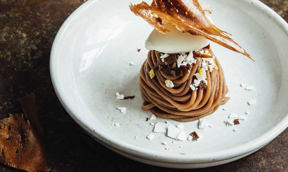 Si la crème fouettée et la crème de marrons font bon ménage, c'est encore plus vrai lorsque le yuzu s'en mêle : le chef Grégory Marchand apporte cette touche de fraîcheur avec cet agrume si cher à son cœur.