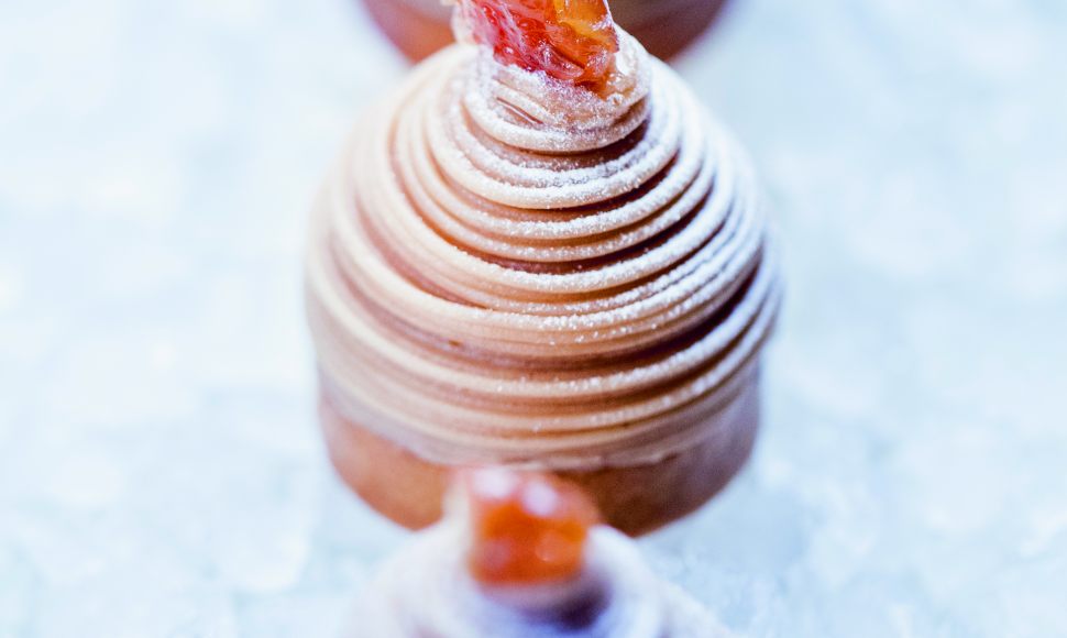 Le chef pâtissier du Meurice propose une version individuelle de ce dessert emblématique de la saison hivernale. Son petit plus : cette gelée au citron qui apporte cette touche d'acidité bienvenue à la douceur du marron.