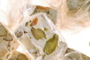 Débarrasser la glace dans un cul-de-poule. Concasser les noisettes caramélisées. Les ajouter dans la glace. La réserver au congélateur.