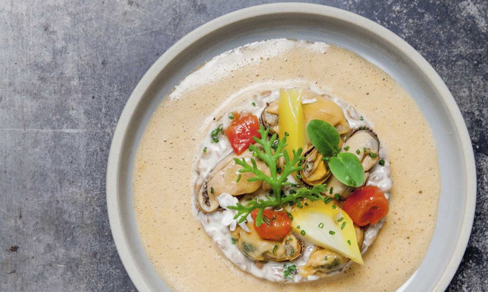 Un mélange de saveurs et de textures qui fascinera vos invités, cette recette de moules est riche en goût grâce à sa fabuleuse soupe de poisson au curcuma et au safran.