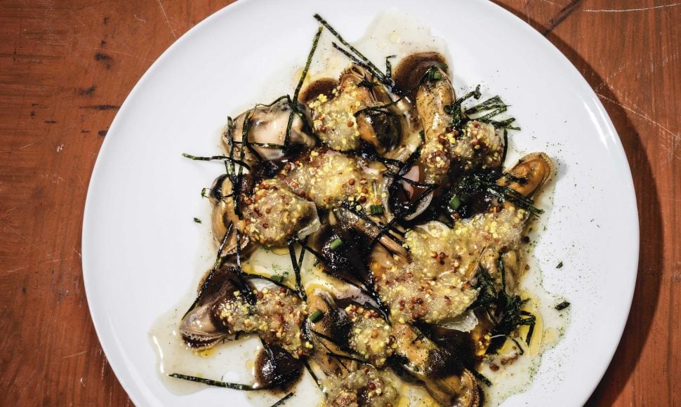 Ce plat illustre à la perfection la combinaison possible entre plusieurs saveurs et textures. Les moules assorties d'une sauce à l'échalote, au vin blanc et au café expresso font éclater un festival d'affinités et de contrastes.