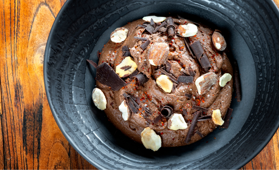 Avec sa mousse au chocolat intensément cacaotée et sa panna cotta au miel et au poivre, le chef pâtissier Cédric Perret joue la carte de l’équilibre entre onctuosité et légèreté. Un mariage de textures et de saveurs qui célèbre la générosité du chocolat tout en apportant la fraîcheur et la douceur d’une panna cotta parfaitement fondante.