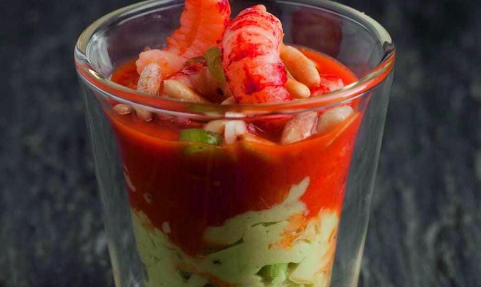 C’est bien connu, l’avocat et les crustacés se marient à merveille. Pour un vrai repas de fête, Alain Ducasse vous livre sa recette de la mousse d’avocat aux écrevisses : un vrai délice. Après avoir mélangé la pulpe d’avocat avec de la crème, déposez cette préparation dans un syphon pour obtenir une mousse onctueuse. Préparez ensuite un confit de poivrons et mélangez les écrevisses avec des rondelles de cébettes et un filet de jus de citron vert. Vous n ‘avez plus qu’à dresser vos verrines en déposant la mousse d’avocat, le coulis de poivrons, les écrevisses, les cébettes et des pignons de pin grillés.