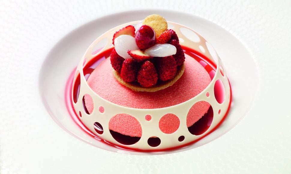 "J’avais envie d’un dessert de fête très élégant, où la technique était au service de l’effet « waouh » que l’on aime créer pour les grandes occasions. À la fois bon et beau, il associe la fraîcheur et la délicatesse auxquelles je tiens."