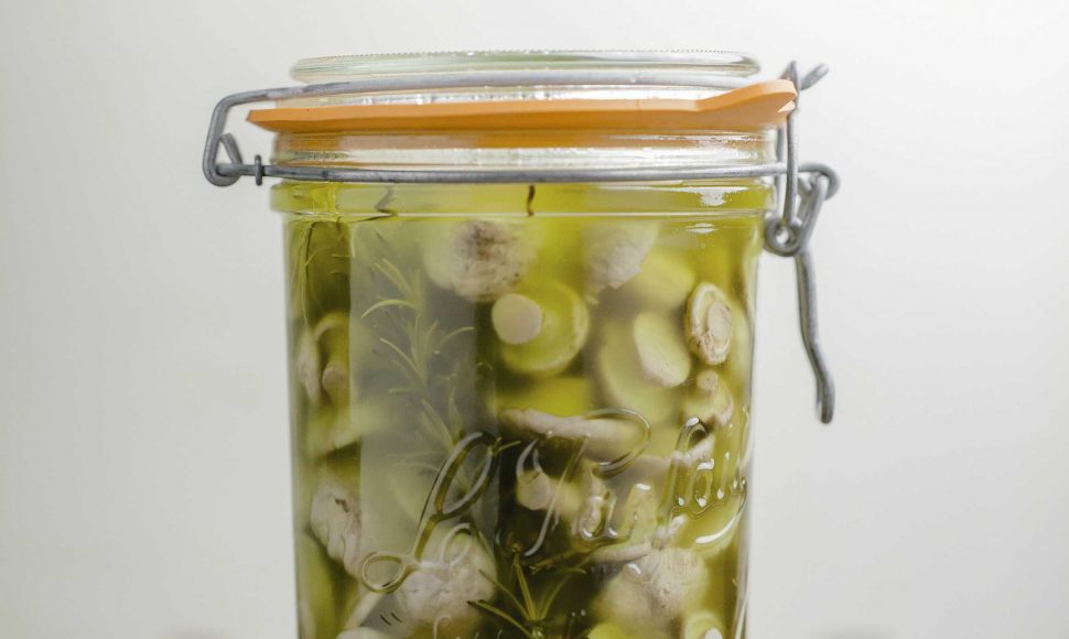 Déposez-les dans le bocal en intercalant les branches de romarin et de thym et les gousses d’ail. Tapotez régulièrement le bocal pour tasser les champignons. Versez ensuite l’huile d’olive jusqu’à ce que les mousserons soient entièrement recouverts.
