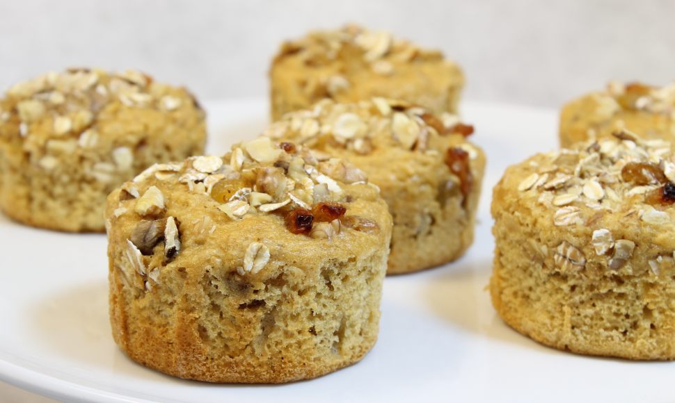 Dans un saladier, déposer le Rapadura, la farine, la levure et le sel. Bien mélanger. Ajouter ensuite les raisins secs, les noix hachées, les flocons d'avoine et le son. Bien mélanger à nouveau (en garder 2 pincées de chaque : flocon d’avoine, son, noix hachées, et raisins secs dans un bol). Verser le fromage blanc et remuer. Puis ajouter les œufs et l'huile de tournesol en mélangeant avec une maryse jusqu'à ce que tout soit bien incorporé.