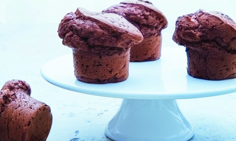 Faites fondre le beurre et le chocolat sans trop les chauffer au bain-marie ou au four à micro-ondes. Battez les œufs dans un autre saladier, versez dessus le lait puis le beurre et le chocolat fondus. Versez les éléments liquides au centre du puits.