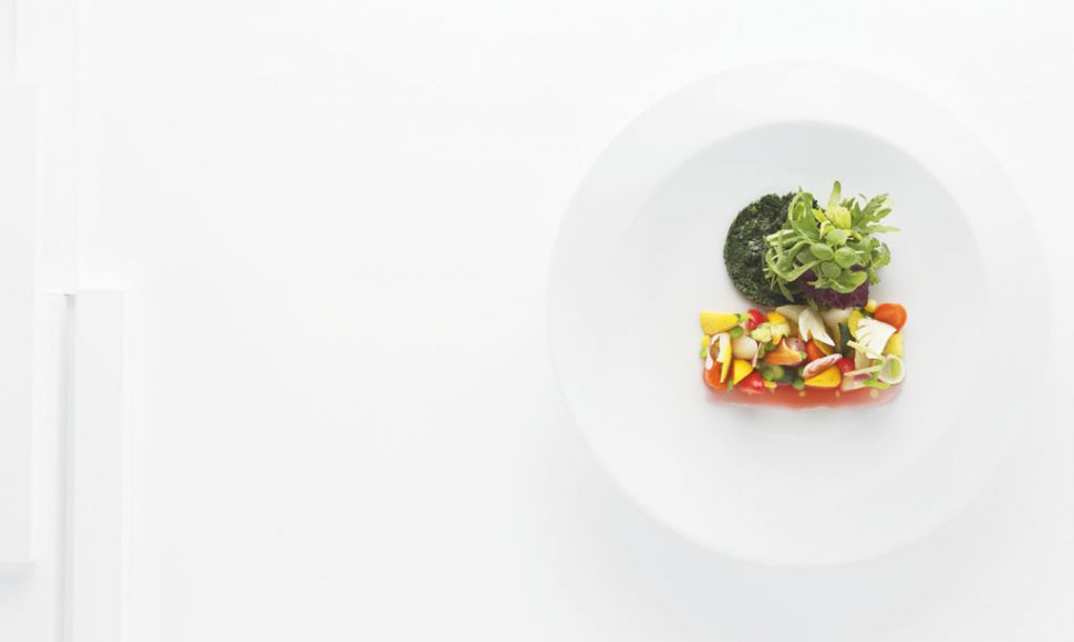 Mariage de saveurs et de textures, cette recette savoureusement végétarienne signée Alain Ducasse est une ode aux légumes : carottes fanes, betteraves, asperges, courgettes et radis, le tout rehaussé d'une vinaigrette légumes maison. Une assiette végétale tout en raffinement.
