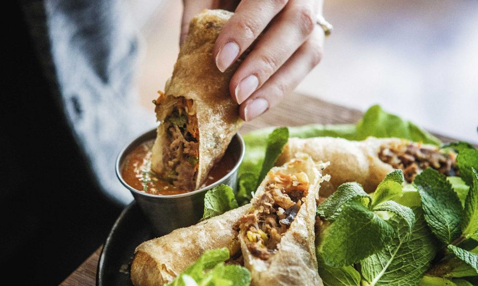 Enveloppée dans une feuille de riz, une farce gourmande relevée au gingembre, mi-asiatique, mi-landaise, à base de magret de canard, de champignons noirs et de vermicelles chinois. Un festival de goûts, plus puissants les uns que les autres, qui explose en bouche.
