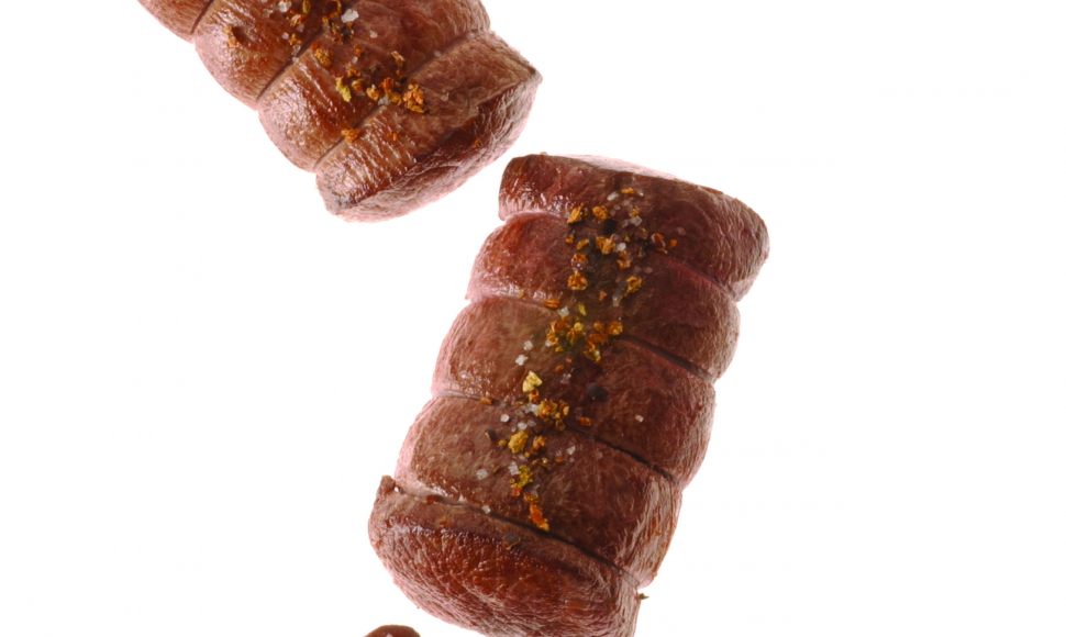 Lever les filets de chevreuil. Les dénerver complètement et les tailler en petit gigotins de 160 g. Les ficeler comme des rôtis. Les paner légèrement avec le poivre du Sarawak.