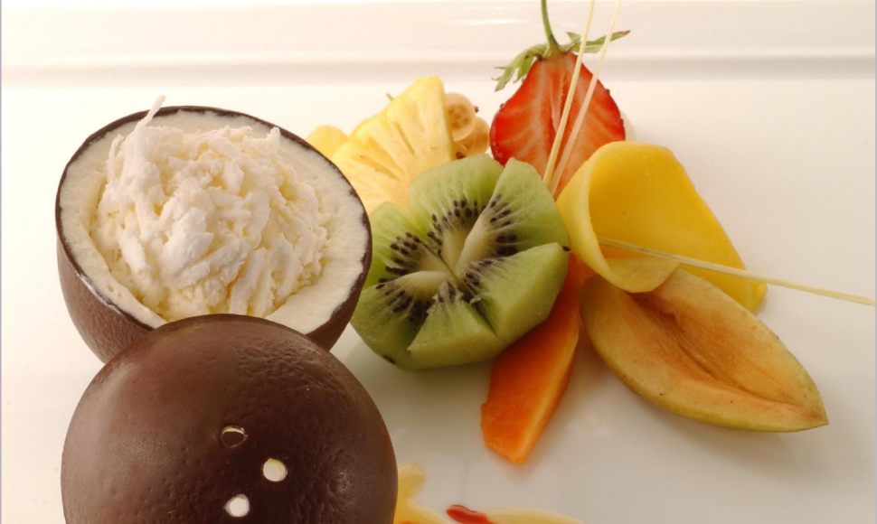 Surprenez vos convives avec cette savoureuse recette trompe-l’œil. Réalisez des coques en chocolat déguisées en noix de coco garnies de glace parfum coco et d'une onctueuse chantilly, le tout servi sur un lit de fruits exotiques. Rafraîchissez-vous en dégustant ce dessert gorgé de soleil.