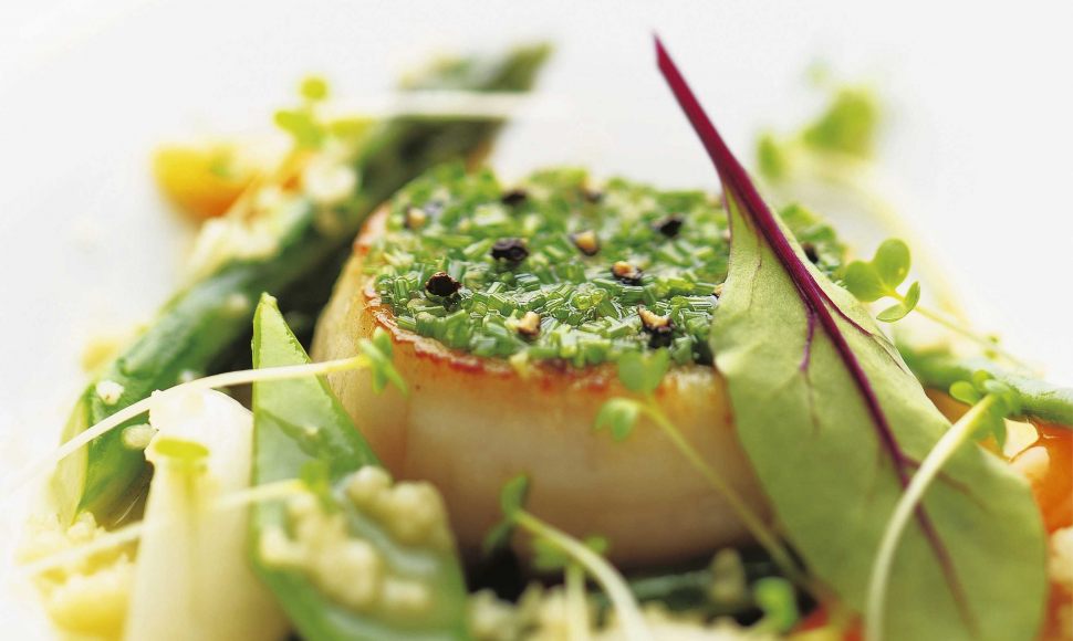 Noix de saint-jacques poêlée aux légumes mitonnés à l’huile d’argan