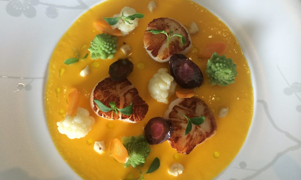 Noix de St Jacques au pitacou citron, espuma de légumes oubliés et feuille de réglisse