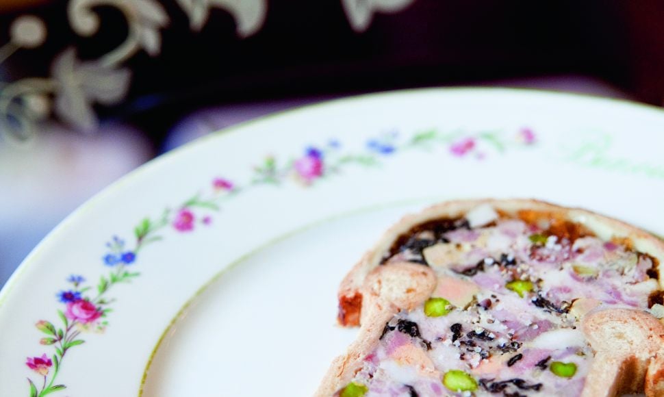 Notre pâté en croûte, cœur de laitue à l’huile de noix et chapons aillés