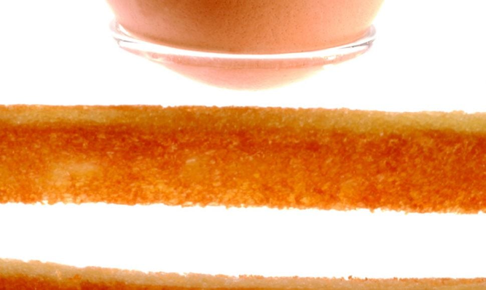 Les égoutter. Le blanc doit être à moitié coagulé, le jaune reste liquide.