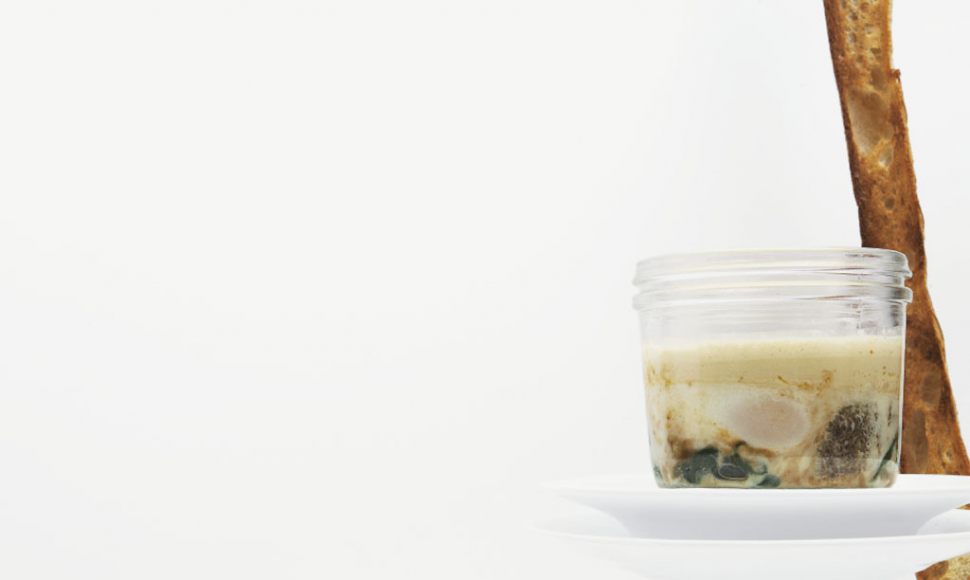 œuf cocotte aux écrevisses et morilles