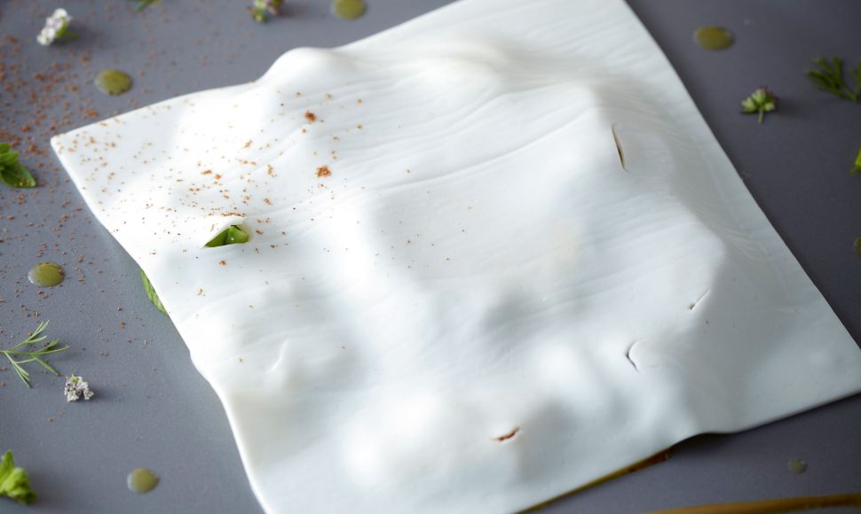 Clarifiez les œufs. Faites mariner les jaunes d’œufs dans le vinaigre de Barolo et la sauce soja. Réservez les blancs pour une autre préparation. Portez l’eau à ébullition, ajoutez l’agar-agar et faites cuire 2 min à ébullition.