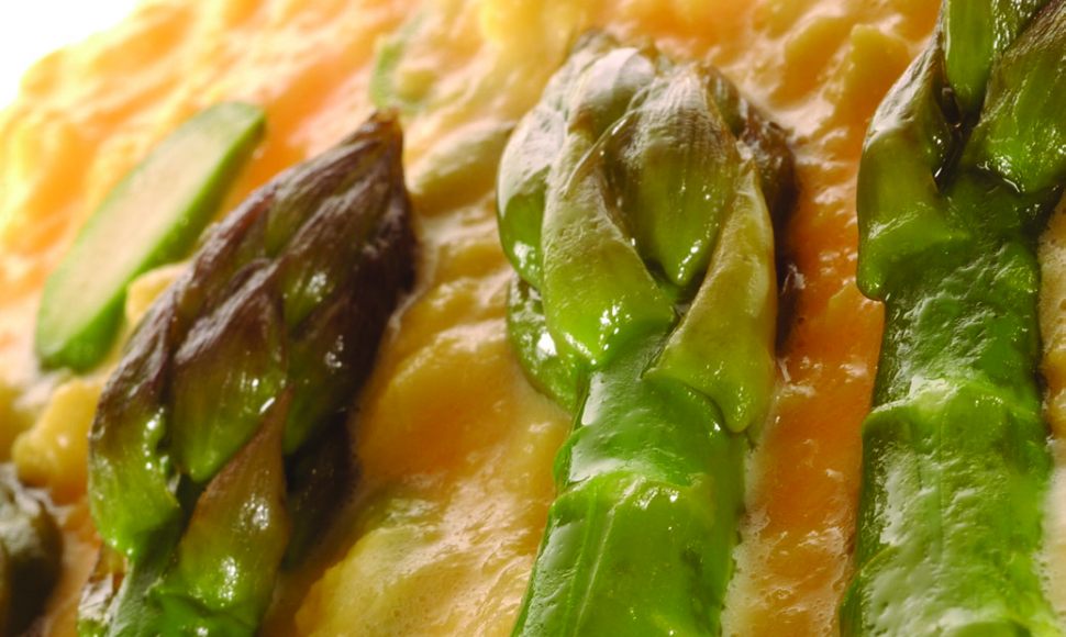 Chauffer l’huile d’olive dans un sautoir. Y déposer les pointes d’asperges, les faire suer sans coloration pendant 1 minute. Ajouter le fond blanc à hauteur. Assaisonner. Couvrir. Cuire pendant 2 minutes.