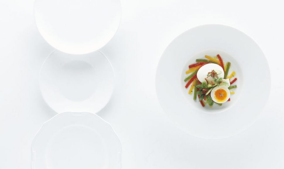 œufs mollets piperade, condiment chorizo, mouillettes d’asperges