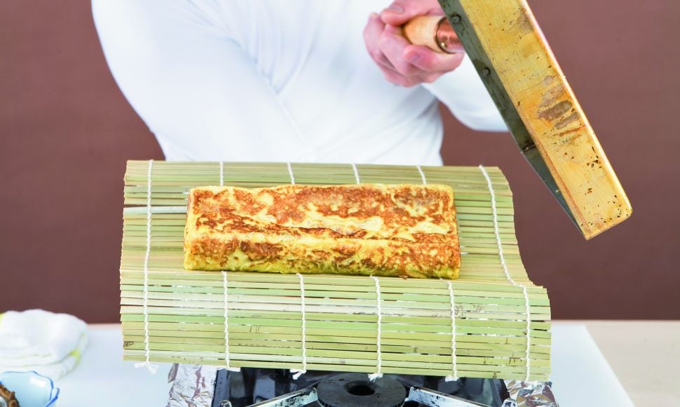 La technique pour réaliser l'omelette japonaise Tamago-yaki est très différente de celle utilisée pour notre omelette traditionnelle. Pour la préparer il vous faudra une paire de baguettes en bambou, une poêle carrée (18 x 18 cm) et une natte en bambou. Découvrez les explications en pas à pas de l'École de Cuisine Alain Ducasse.
