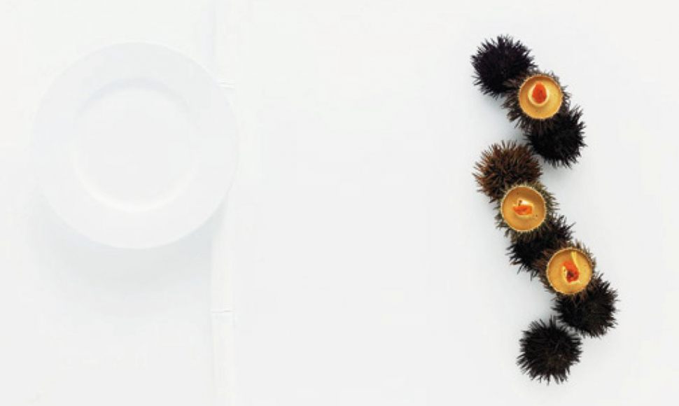 Oursin d’hokkaïdo et yuba, bouillon clair de poissons de roche safrané à la coque