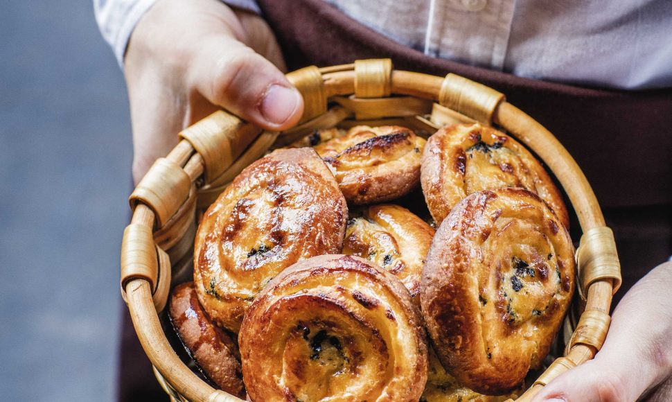 Une viennoiserie salée ayant l'allure d'un pain aux raisins, on retrouve une pâte à croissant garnie d'une béchamel au parmesan et de gros dés de truffe remplaçant les raisins secs.