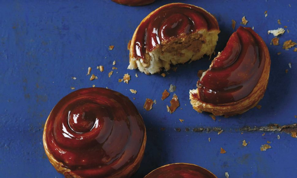 Réalisez la pâte à croissant, puis abaissez-la sur 3 mm d’épaisseur. Roulez la pâte en boudin pour obtenir des spirales à la découpe. Déposez le boudin dans un moule à bûche chemisé de papier cuisson afin qu’il garde une forme arrondie et gardez-le 1 h au frais. Beurrez des cercles de 9 cm de diamètre sur 6 cm de hauteur et posez-les sur une plaque recouverte de papier cuisson. Coupez le boudin en tranches de 3 cm d’épaisseur et disposez-les à plat au centre des cercles. Laissez reposer 1 h 30 à température ambiante. Préchauffez le four à 180 °C (th. 6). Enfournez les cercles pour 15 min, jusqu’à ce que les pains soient bien dorés.