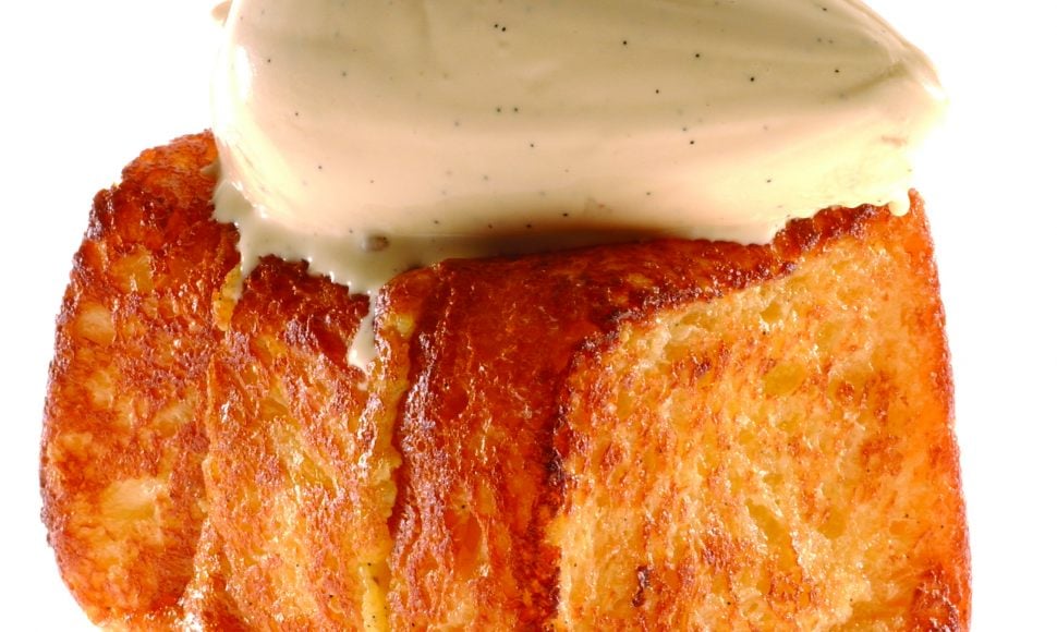 Il fut un temps où il était inenvisageable de jeter de la nourriture. Le savoureux pain perdu était alors la solution idéale pour recycler du pain rassis en une délicieuse pâtisserie. Il est fait d'ingrédients de base comme le lait, les œufs et le beurre pour pouvoir être réalisé à tout moment. Voici notre recette, faite à partir de brioche, à laquelle on a ajouté de la crème pâtissière et une boule de glace vanille pour toujours plus de gourmandise.