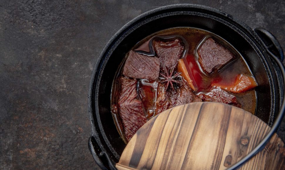 Coupez le paleron en cubes de 4 cm. Pelez les oignons et coupez-les grossièrement en petits dés.
