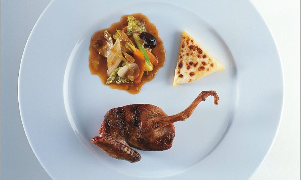 Palombe des cols pyrénéens cuite sur la braise, poêlée de légumes croquants caramélisés au suc de raisin muscat
