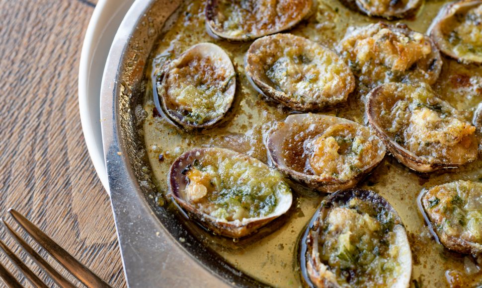 Rendre le beurre pommade en le laissant à température ambiante durant une demi-heure avant utilisation ou en le passant 10 secondes au micro-ondes. Ciseler finement l’échalote et hacher l’ail et le persil. Mélanger le tout et adapter l’ail à votre convenance. Dans un plat, ajouter le beurre persillé sur les palourdes et parsemer de chapelure. Enfourner à 180°C pendant 6 minutes.