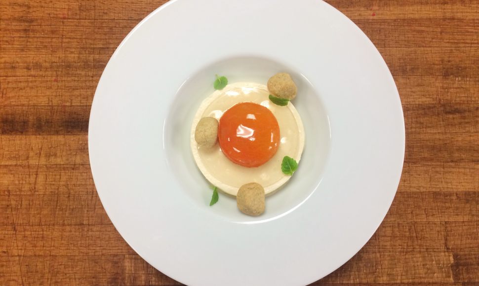 Préparer une plaque à rebord avec une feuille guitare bien plaquée et poser des cercles de 8 cm de diamètre et 2 cm de hauteur Mettre les blancs et le sucre et monter au bain marie jusqu’à 50°C Terminer de monter au batteur jusqu’à complet refroidissement Incorporer un peu de meringue dans la purée d’abricot Incorporer le reste de la meringue et la crème montée en une fois délicatement à la maryse Remplir à hauteur dans les cercles, tapoter pour enlever les éventuelles bulles d’air et lisser à hauteur du cercle Congeler, démouler et réserver au congélateur
