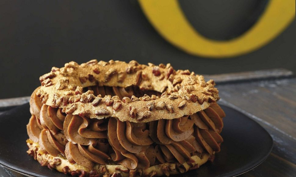 Le célèbre Paris-Brest revisité et tonifié avec une fine couche de marmelade de citron, crème pécan et poudre scintillante.
