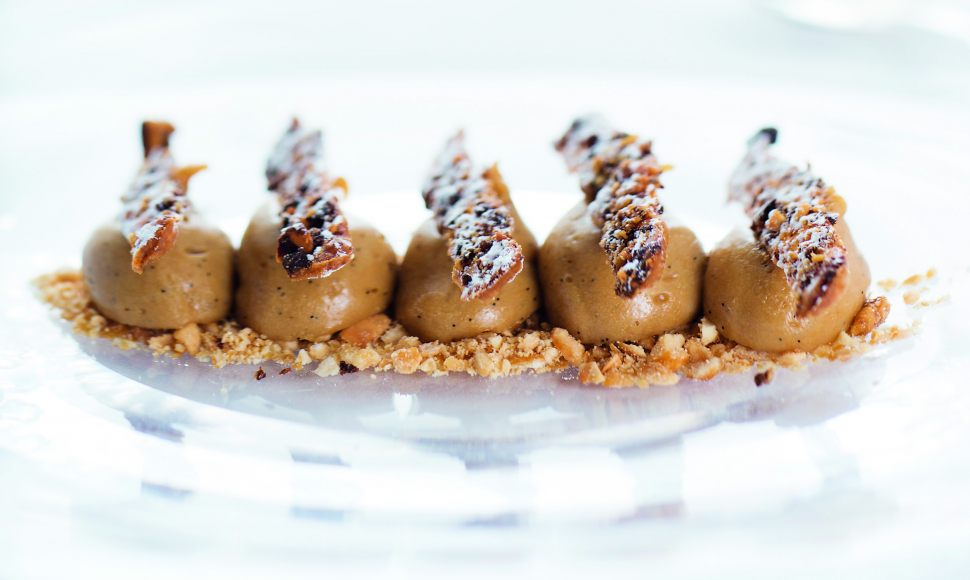 Préchauffez le four à 200 °C (th. 7). À l’aide d’un chablon ou d’un pochoir, dressez des rectangles de 5 x 0,5 cm de pâte à choux sur une plaque recouverte de papier cuisson. Dorez ces rectangles au jaune d’œuf en utilisant un pinceau et saupoudrez-les de noix de pécan. Enfournez et faites-les cuire 8 min, en retournant à mi-cuisson.